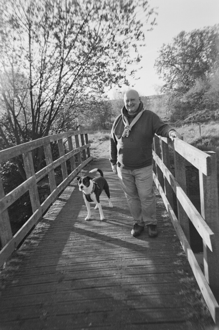 27 Shots was a competition put together by Tinderflint TV production company. Black & white disposable cameras with 27 frames were given out to various industry people to take photos with. The creative brief was open with no theme or restrictions. As I spend time at the park with my own dog, we have made many friends and I wanted to photograph a series of portraits of people with their dogs.